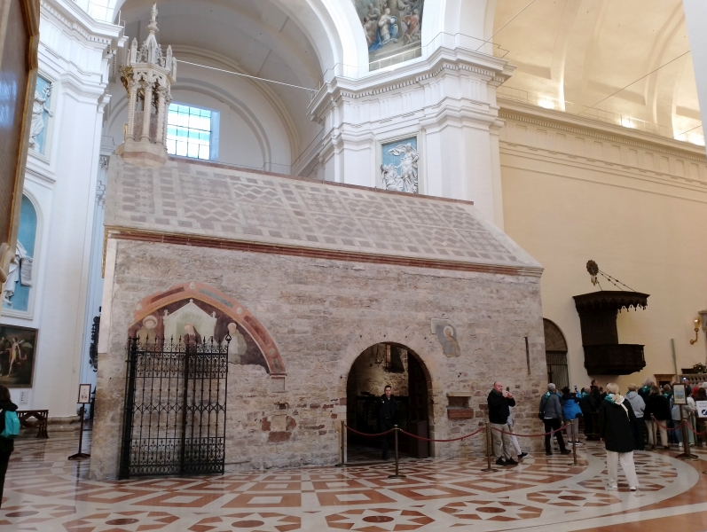 stáj (dnes, kostelíček), kde se narodil sv. František