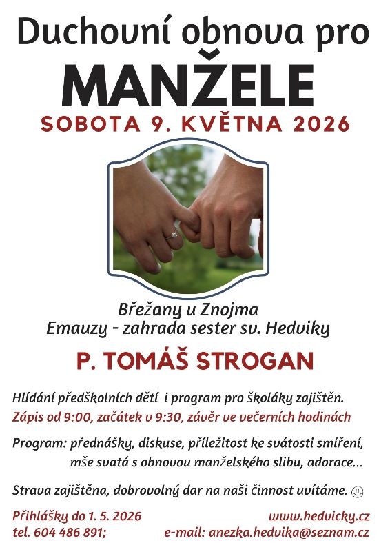 9. 5. 2026 Duchovní obnova pro manžele - P. Tomáš Strogan